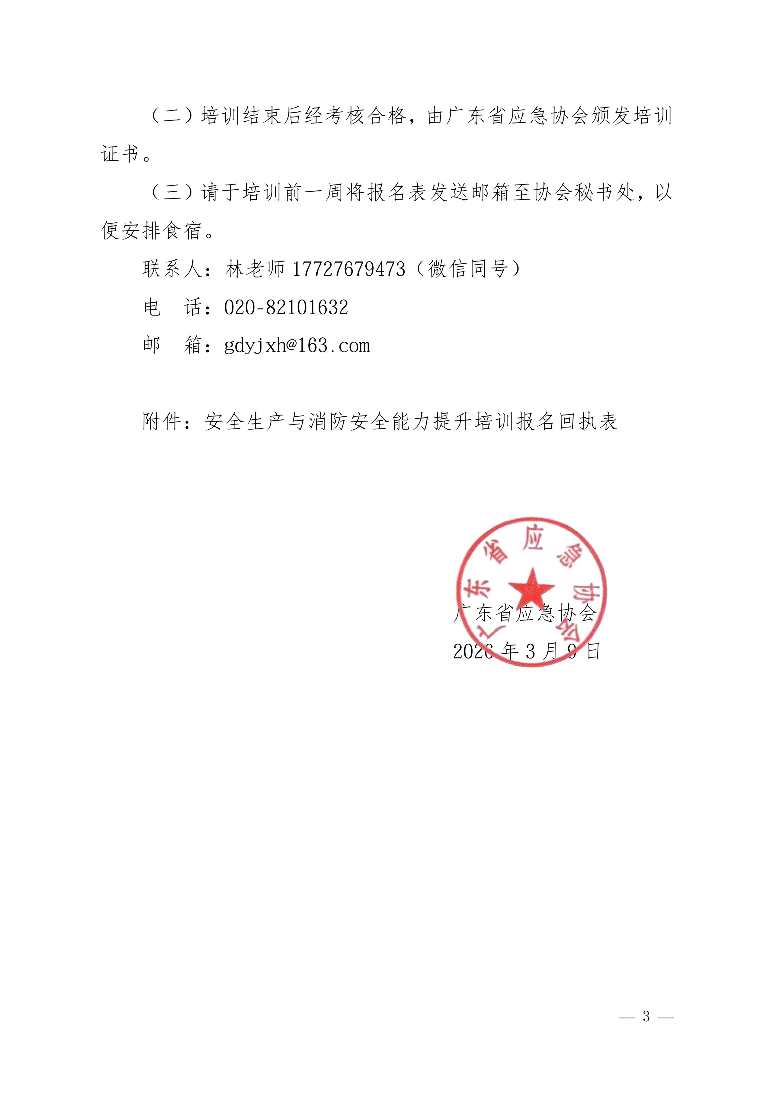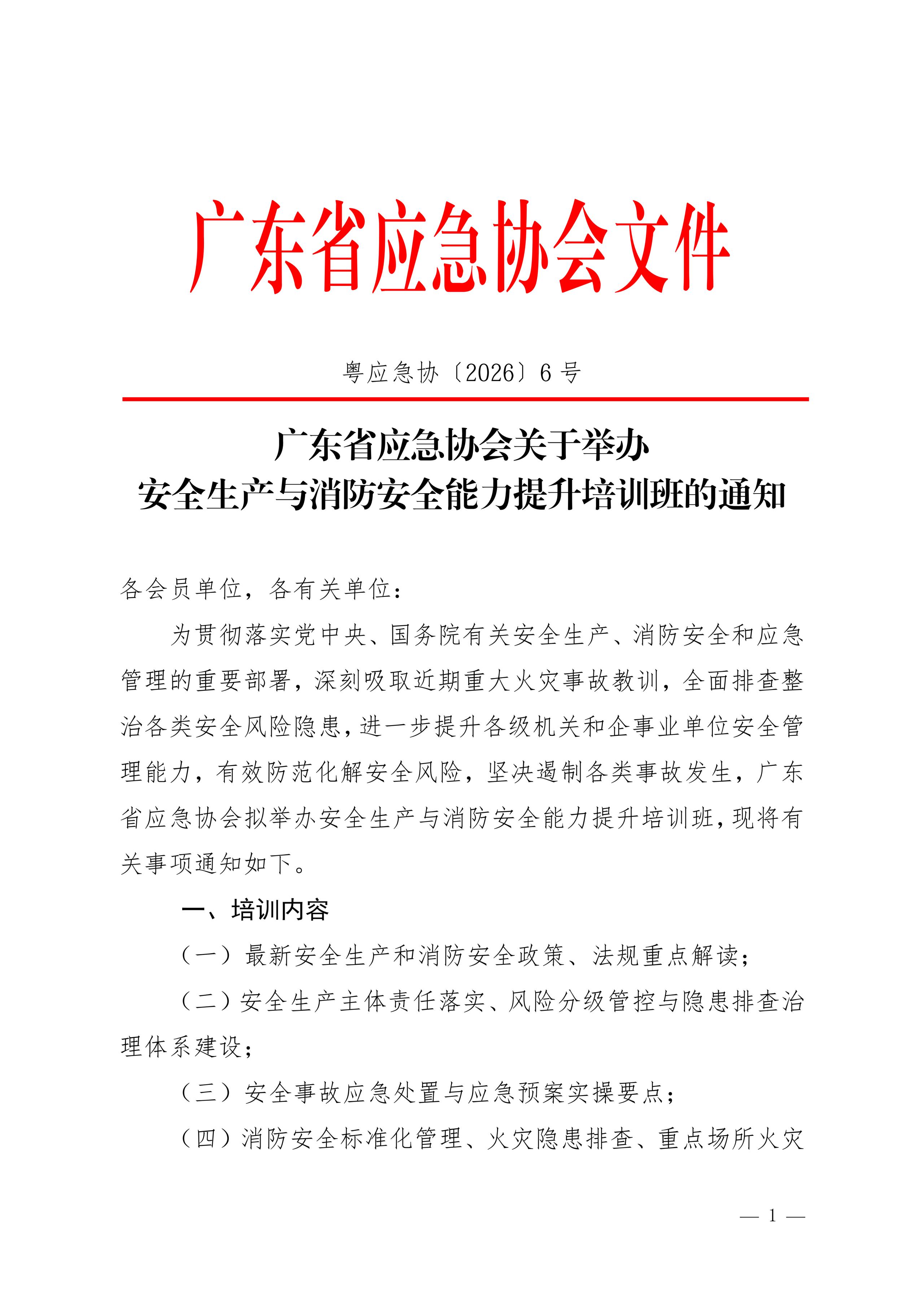 广东省应急协会关于举办安全生产与消防安全能力提升培训班的通知