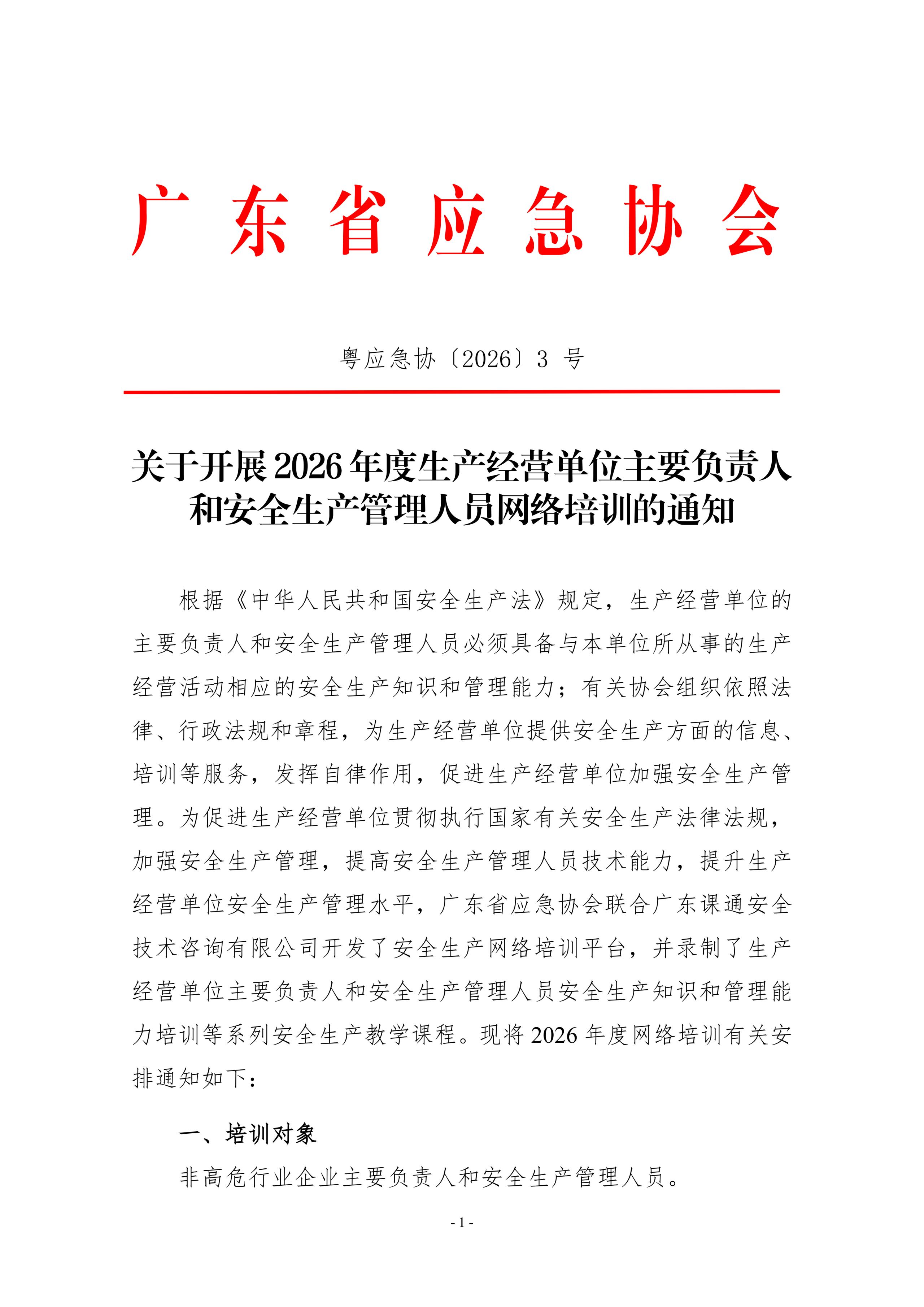【安全生产培训】关于开展2026年度生产经营单位主要负责人和安全生产管理人员网络培训的通知